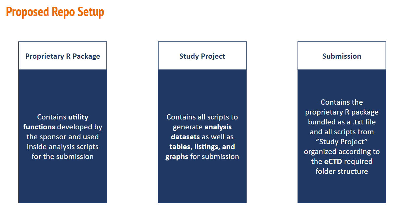Overall, to our Health Agencies, the single source of truth will of course come from our ‘Submission’ repo, where they may not need all of the details of the study project flow steps. We just wanted to be able to discern that R packages should be kept in their own packages and project analysis work should not be stored as a package.
